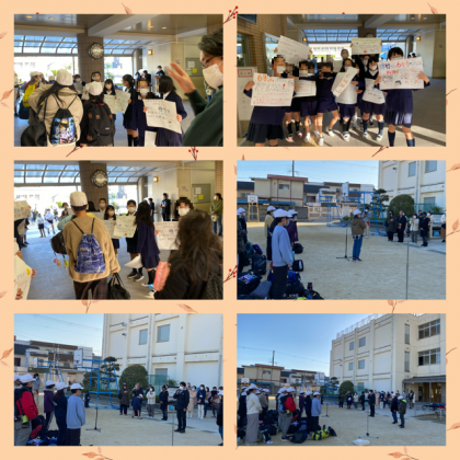 5年生が、先輩の帰りと担任の津村先生の帰りを玄関で迎えました(^O^)