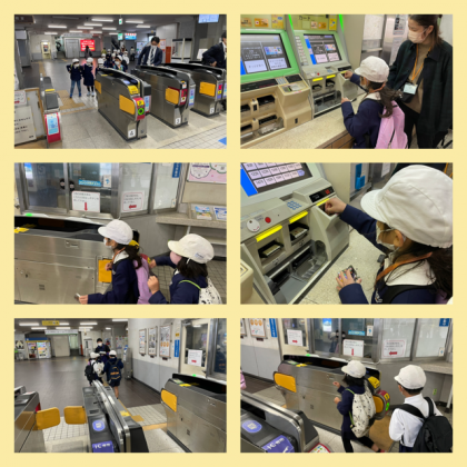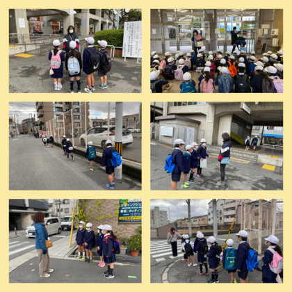 先日、2年生全員で矢田駅までの経路や、気をつける場所の確認をしました。今日は、いよいよ本番です。4人から5人の小グループで、学校から矢田駅、そして切符を買って、近鉄電車に乗って針中野まで行くという小さな冒険に出発の日が来ました(^O^)