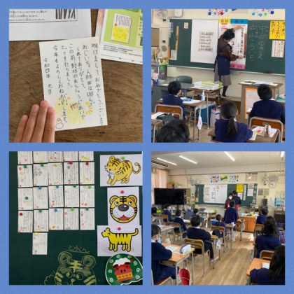 今年も、郵便局長の中西さんと西山さんを講師としてお招きし、「はがきの話」と「年賀状の書き方」について、教えていただきました。