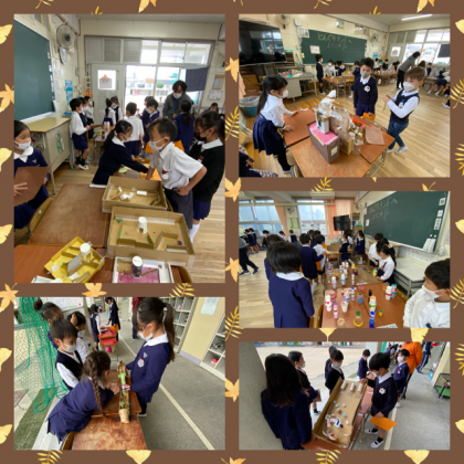先日、『おもちゃランド』に招待してもらったお返しです。二年生がしていたお店作りのやり方や、ルールの説明のやり方など、お手本があったので、一年生もイメージがしやすかったことでしょう。