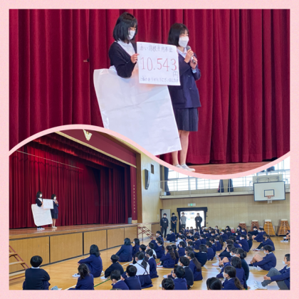 児童会より、先日の赤い羽根共同募金の集計が報告されました。