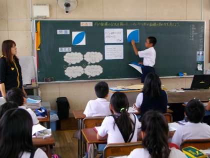 子どもたちは、補助線を入れて考えたり、図形を組み合わせて考えたりして解決していました。