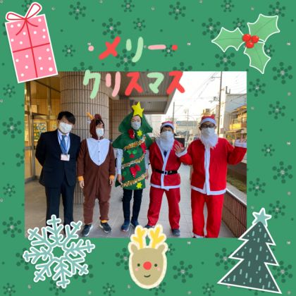 今年も、終業式の12月24日に鷹合小学校にサンタクロースが来てくれました。ツリーに、トナカイさんもいます(笑)