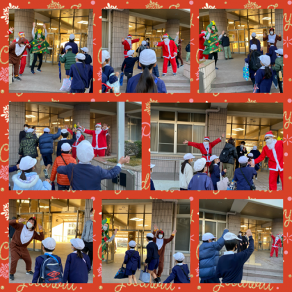 「メリークリスマス!「おはよう!」と声をかけてくれるサンタさん達に、笑顔で手を振ってこたえる子ども達でした。