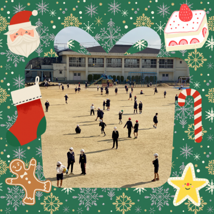 冬晴れの下、子ども達は運動場で元気に遊んでいました。通知表ももらい、明日からは冬休み。