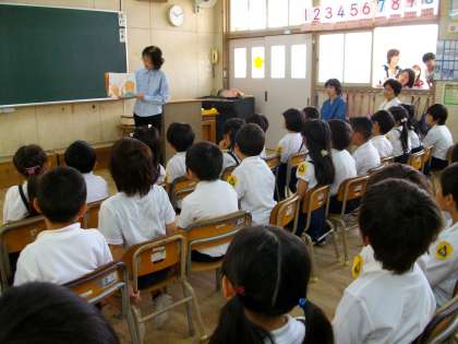 今年度最初の土曜授業は、全学年ゲストティーチャーとして「おはなしたまてばこ」の皆さんに来ていただき、おはなし会を行いました。