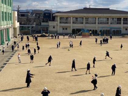 非常ベルと緊急放送で、運動場では遊びを止めてその場に座ります。教室で過ごしていた子は机の下に頭を入れ、廊下にいた子は窓から離れてしゃがみます。 揺れがおさまった後に、速やかに「お・は・し・も」で、運動場に避難することができました。いつでもどこでも冷静に、自分の命を守る行動がとれるように、気をつけたいものです。