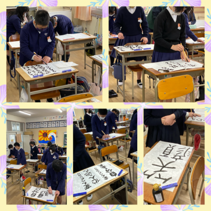 自分を励ます「大好きな歌のフレーズ」「格言」「座右の銘」等を選び、心を込めて習字で書き、自分の部屋や机の近くに掲示しておくことで、自分を励まし、困難に立ち向かい、乗り越えていけるツールに一つにしよう、という活動を実施しました。