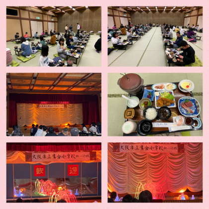 食後には、扇芳閣名物の噴水による歓迎セレモニーを見せていただきました。BGMは『冬げしき』五年生の音楽で習う共通教材です。