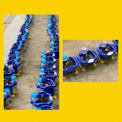 秋に植えたチューリップの球根。芽が出て、どんどん成長してきています。1年の子ども達と同じですね。2年生になる頃には、色とりどりの花を咲かせてくれることでしょう。