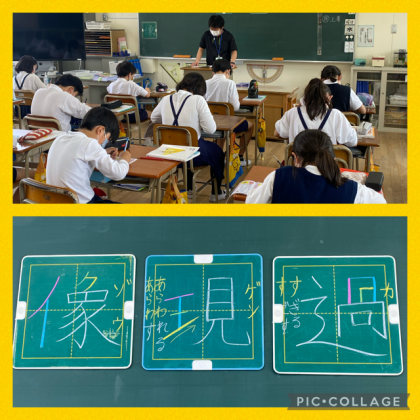 3時間目の5年1組は国語の授業中です。笠井先生の美文字もご覧ください。いつか、算数科の授業も見せてくださるそうで、楽しみにしています。