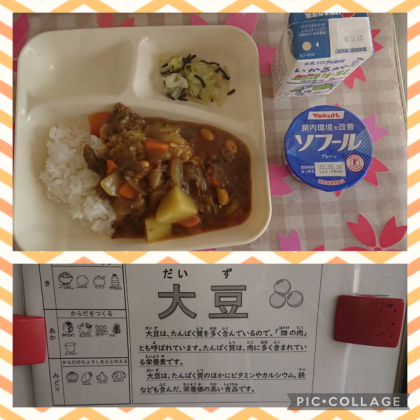 本日の献立は、牛肉と大豆のカレーライス