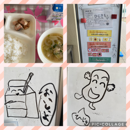 今日の給食は、和食。鮭のごまみそ焼きはごまが香ばしくて、大変美味しかったです。ひしきの炒め煮はにんじんとうすあげも入っていて、しゃきしゃきしていました。