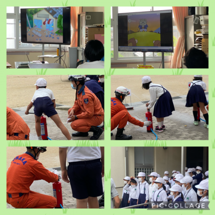 3年生・4年生は、「サル太郎 地震に負けないぞ!〜地震への備え大作戦」というDVD視聴、そして水消火器体験を行いました。