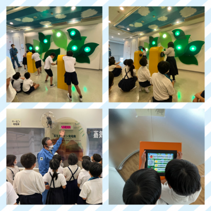 焼却場では、ごみを燃やした熱を利用して発電しているそうです。ライトが点滅しているのは発電の体験でしょうか?