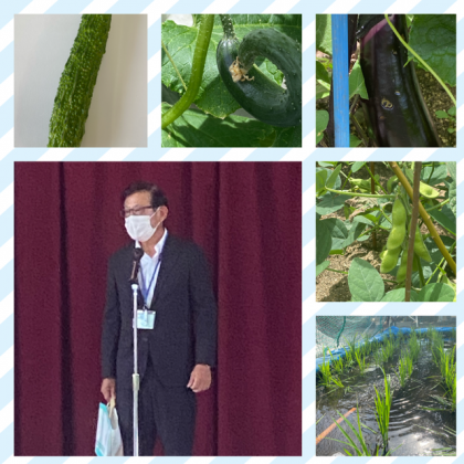 そして、教頭先生おすすめの夏野菜として、ゴーヤを紹介してくださいました。「にがうり」とも呼ばれ、少し苦味のある野菜です。おもに沖縄で栽培されていましたが、夏に食べると体い良いことで人気が高まり、シャキシャキしてとってもおいしいです。