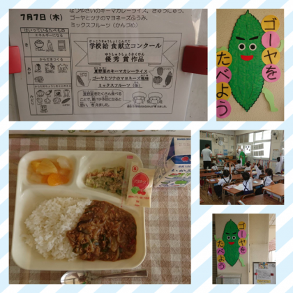 今日は七夕ですね。そんな夏の日の給食には、ゴーヤ登場です!!