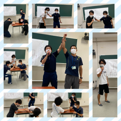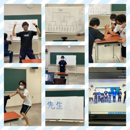今日の集会は、先生集会で、「学校で一番の力自慢は誰だ?」ということで、うでずもう大会が行われました。もちろん、一戦ごとに消毒は必ずしています。