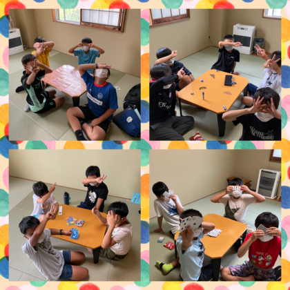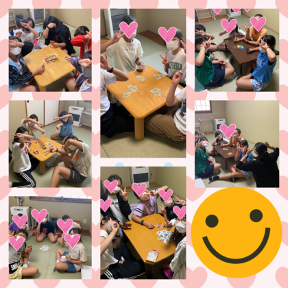 男子は、トランプをしたり消しゴム飛ばしをして楽しく過ごしているようです。女子もウノやトランプをしています。あれ?増池先生もいますね!!