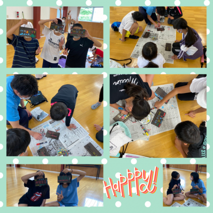 笠井先生に、「裏面も描いていいよー」の声に「やったー!!」と喜びながら、これから始まる林間学習の様子を想像して描いていました。
