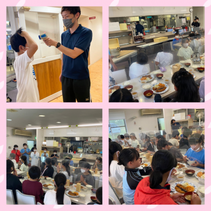 生活班が集まったら、検温して食堂ホールへ入ります。黙食ですが、子どもたちからは「おいしい!」と思わず声が。同行しているカメラマンさんもシャッターチャンス到来です。
