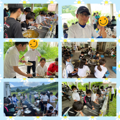 おいしくいただいた後の片付けも、自分たちで。飯盒や鍋にすすがついているとやり直しです。ぴかぴかになるまで、こすります。