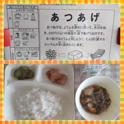 きゅうりのゆずのかあえは、本当にゆずの香りがしておいしかったです。厚揚げは、子どもたちがおかわりじゃんけんをしていましたよ!!