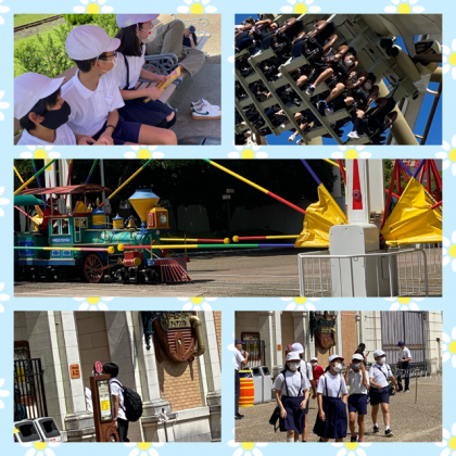 一番に昼食タイムにした班もあれば、すいているうちに、あの吊り下げ式のジェットコースターのピレネーに乗りに行った班もありました。バスの中で、津村先生は、
