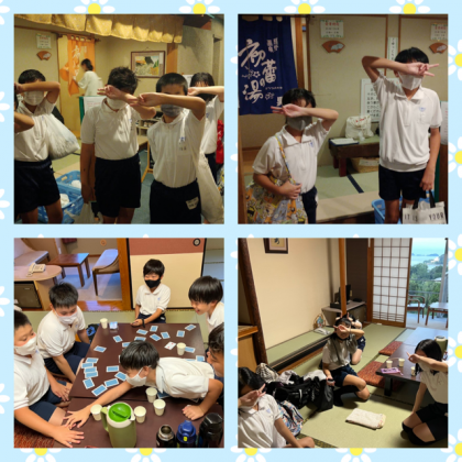 2組からお風呂タイムということで、1組さんはトランプ。ウノタイムです。お勉強している人や、のんびりくつろいでいる人もいます。