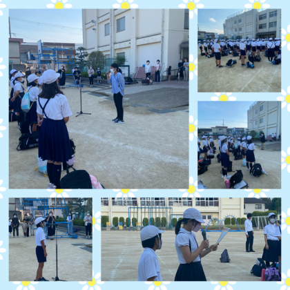 「全員参加の60名で出発して、60名で帰ってこれた修学旅行。すごくうれしかった。今週は、中野中学授業・部活動体験があるけど、がんばろう!」とお話がありました。