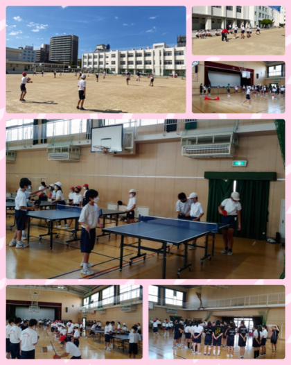 そして、部活動体験です。バレーボールに卓球、バスケットボールでしょうか?グラウンドでは、陸上部に野球部を体験しました。