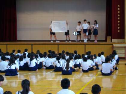 児童集会がありました(集会・図書委員会 7月9日)