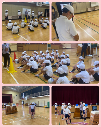 本日は、5年生の研究授業ということで増池先生が、「心を1つに!つなげラリー!」というソフトバレーボールの授業を見せてくださいました。