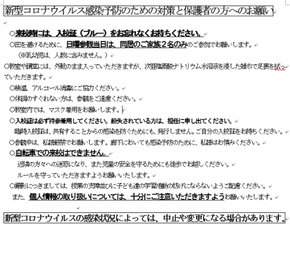 作品展・日曜参観のご案内