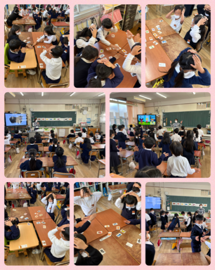 5・6年生は教科として英語学習が始まっています。そして、3・4年生は英語活動を行っています。実は、1・2年生も、週に3日ほど、短時間学習として英語タイムを設けて取り組んでいるんですよ!