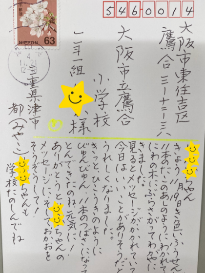 いただいたはがきやお手紙をクラスで読み上げると、大きな拍手が起こりました!!