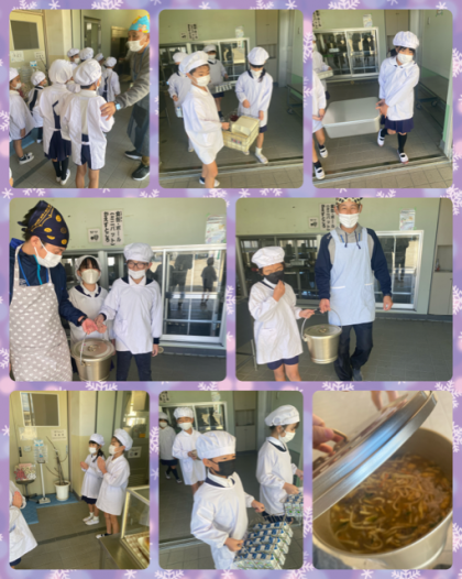 「カレーうどんの大きい食缶が重たいので、必ず先生方に一緒に持ってもらえるように連絡お願いします。」