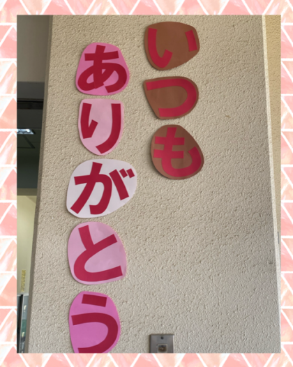給食のサンプルの前には、感謝の気持ちの掲示も貼ってあります。