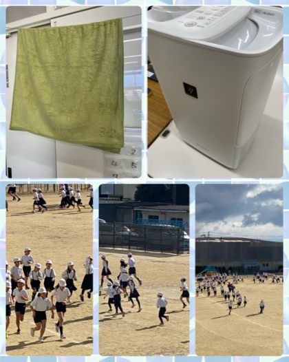 今日も寒いですが、お日様が輝く中、かけ足週間なので元気に走っています。あったまったら、教室ではPTAの方に買っていただいた加湿用のバスタオルと加湿器で教室の温度だけでなく湿度も保っています。