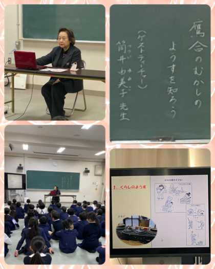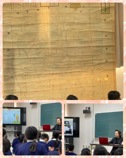 今日は、3年の出前授業の講師として、地域に住まいの筒井先生をお迎えして、鷹合地域の歴史について教えていただきました。