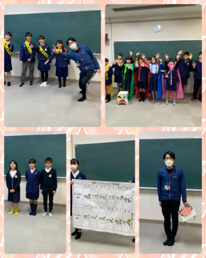 そして、先日のルール守ろう週間のチェックカードの集計の発表もありました。どのクラスも、しっかりと自分を振り返り、ルールを守って活動できていたようです。