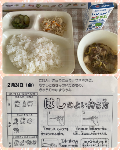 今日の給食カレンダーには、はしのよい持ち方が載っています。イラストや丁寧な説明と共にこんなコメントが載っていました。