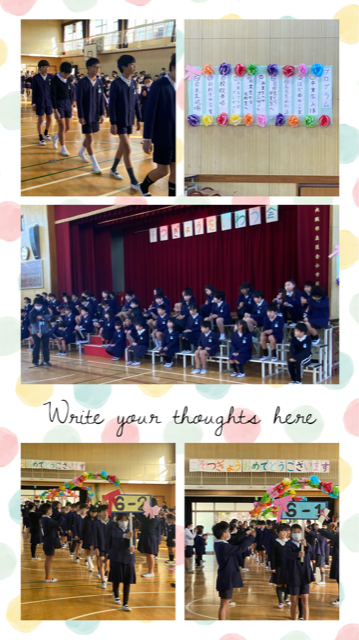 校長先生からは、今の6年生はコロナで、林間学習に行けなかったし、色々な学校行事がなくなりましたが、今年はたくさんの行事ができて、すばらしい姿を見せてくれましたねとお話がありました。