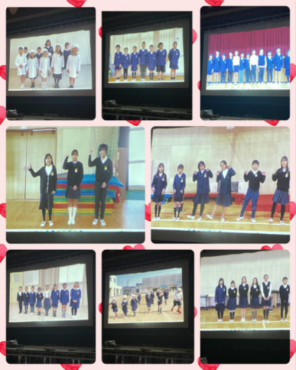 まずは、在校生からの感謝を伝えるムービーを見ました。1年生から5年生まで、6年生にしてもらったこと、助けてもらったこと、優しくしてもらったこと、リーダーとして引っ張ってくれたこと、集団登校や委員会・クラブでの関わり、学校生活での関わりを振り返って感謝のメッセージを伝えていました。