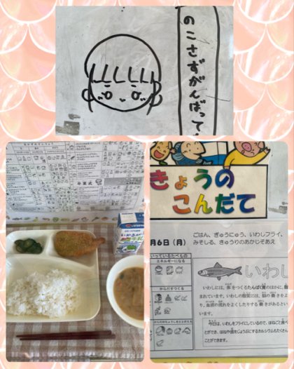 給食委員会の子どもたち、かわいいイラスト描いてくれています。ありがとう💛