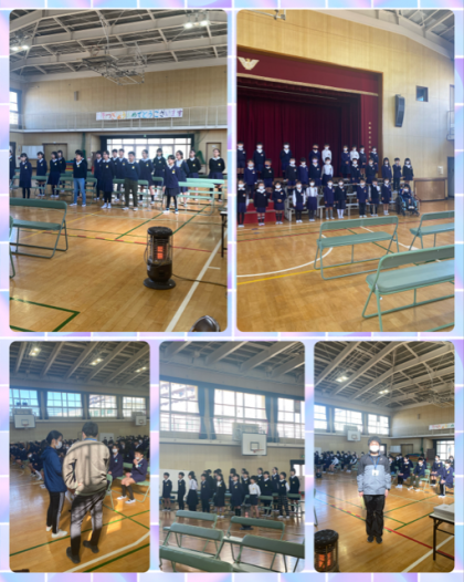 6年生からは、在校生に向けて、これからも安全に気をつけて登校してねとやさしい声がかかっています。こうやって、バトンは受け継がれていきますね。さみしいけど、がんばりましょうね!