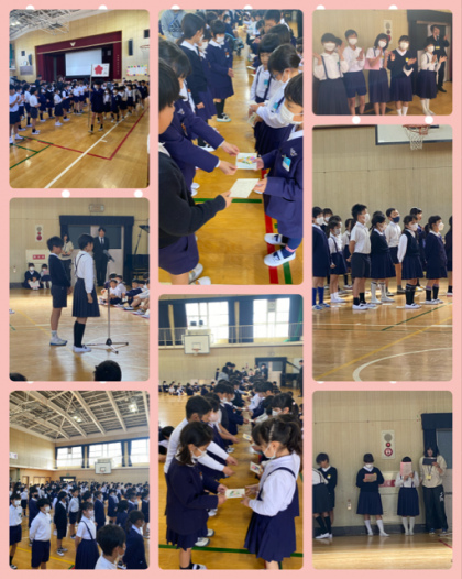 まずは代表委員の立派な挨拶と校長先生のお話です。台本を見ずに、しっかりとメッセージを伝える6年生の代表の姿。1年生から見ても、かっこいいですよ!