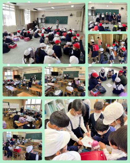 そして、今日は地域別児童集会です。新1年生が加わった集団登校の班ごとに集まって、班長さん・副班長さんの紹介や自己紹介、そして、登校路の確認やきまりを確かめます。