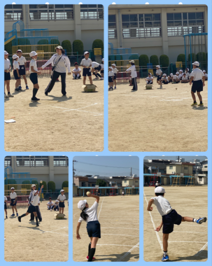 お天気もいいので、水分補給をしながら4年生が始めています。いい投げっぷりに思わずパチリ📷最高記録は34メートルだそうです。