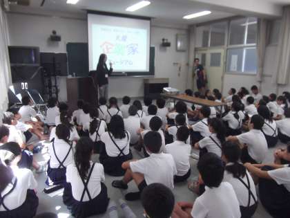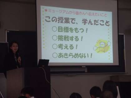 学習参観での、大阪企業家ミュージアムの方による、出前授業の様子です。